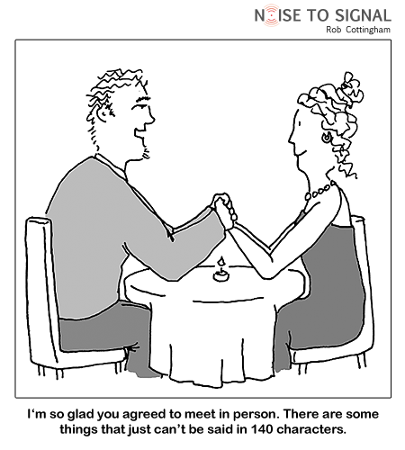 Als ‘Heb jij ook wel eens op Relatieplanet gestaan?’ je nieuwe openingszin in de kroeg wordt, combineer je het beste of both worlds. (Het werkte!) Want hoewel digitale aandacht een belangrijke graadmeter lijkt voor je eigen zelfvertrouwen (hoevaak is mijn hyves pagina al bekeken? En mijn foto? En heb ik nog een leuk berichtje?) blijft fysiek contact natuurlijk het allerleukste..