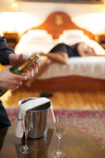 zegt eigenlijk helemaal niet van die romantische dingen, ik krijg hoofdpijn van die dure wijn en het eten is niet zo goddelijk lekker als ik had gehoopt. Mijn voeten doen pijn in die mooie schoenen, mijn sexy jurk is eigenlijk veel te koud. Als we ’s avonds terug in ons hotel komen, komt er van de champagne, aardbeien en chocola in het met kaarsen verlichte bubbelbad weinig meer terecht. Ook de romantische vrijpartij in het zachte hotelbed wordt overgeslagen, omdat we in no time -doodmoe van de lange dag- op het zachte hotelbed in slaap vallen…